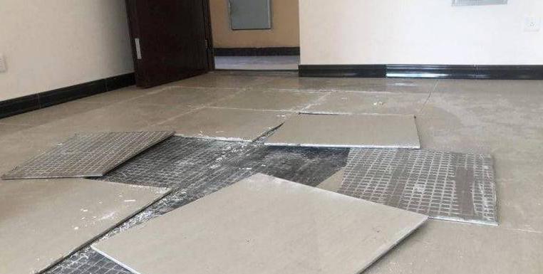 修复方法:先小心取下上翘的地砖,清理干净地面和地砖,然后使用水泥砂浆进行浇灌,让地砖重新贴合。